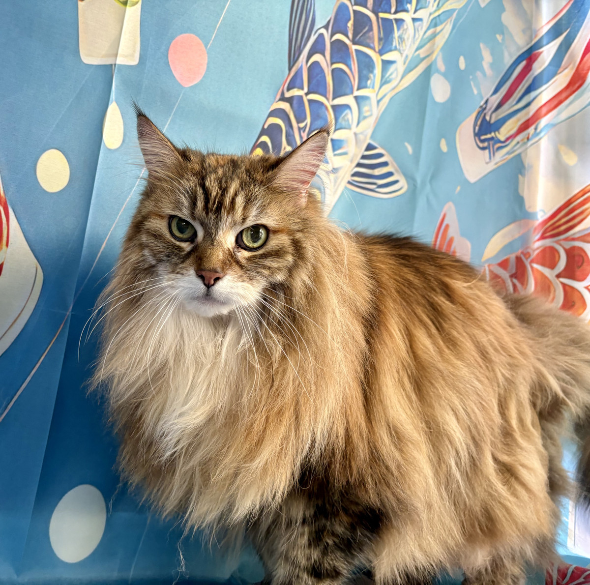 お写真撮影では、青地に鯉のぼりがたくさん飾られた背景の前でパシャリ📸🎏🐱モカちゃんらしい愛らしい表情で、素敵なお写真になりました🌸